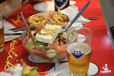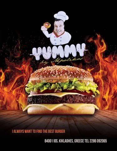 Take Away Yummy steakhouse is one of the oldest and quality shops of its kind with continuous operation Winter & Summer. Visit Yummy or order for free home delivery. With a huge selection of food desserts and drinks such as Appetizers, Salads, Burgers, Portions (in a wide variety of grilled dishes), Wrapped Skewers, Club Sandwiches, Sandwiches, Savory & Sweet Crepes, Soft Drinks & Drinks.